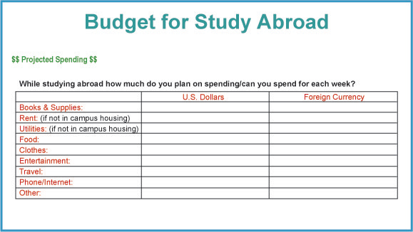 - Have you started budgeting your income and/or saving money to provide for the program costs and cost of living abroad?
